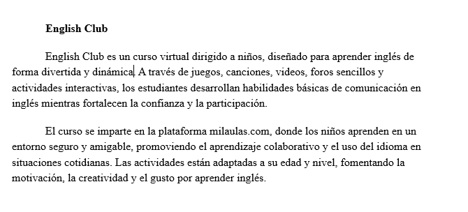 The English Learning Club is a virtual course designed to improve students’ English communication skills through interactive activities, collaborative learning, and practical language use. The course focuses on developing confidence, participation, and meaningful interaction in an online learning environment.